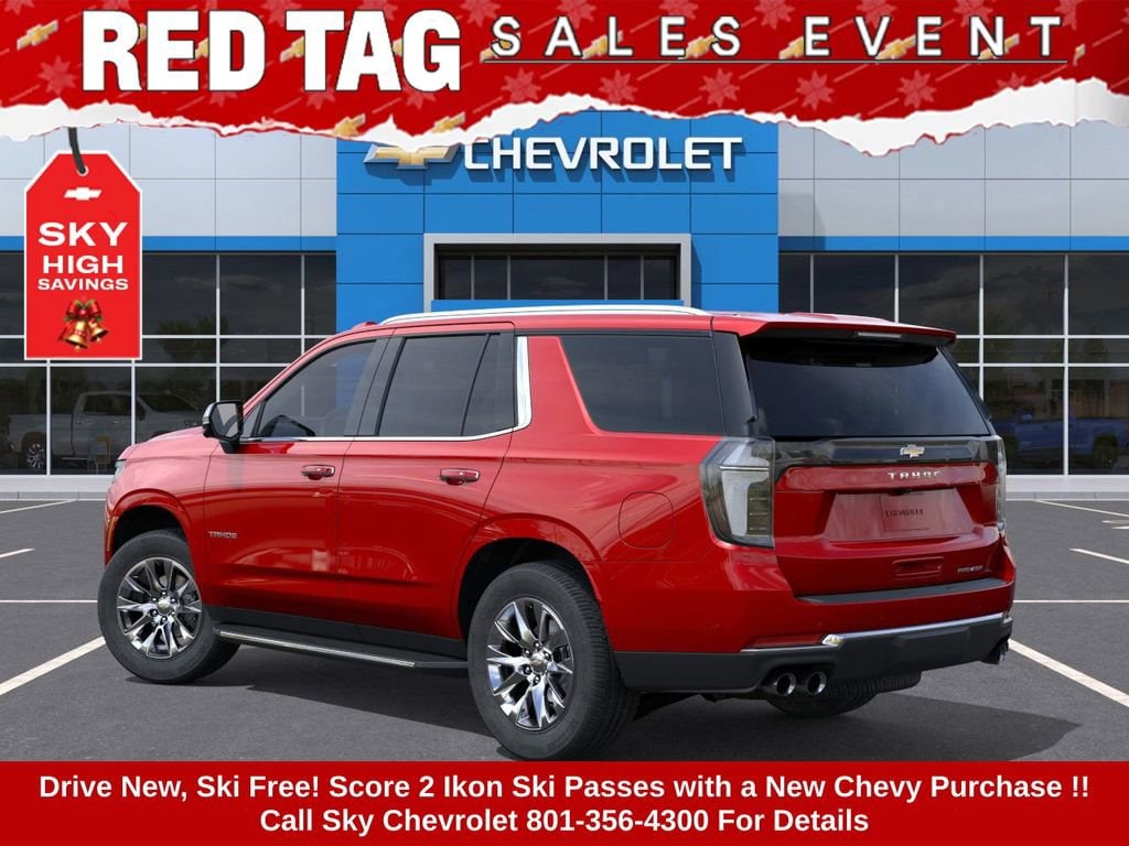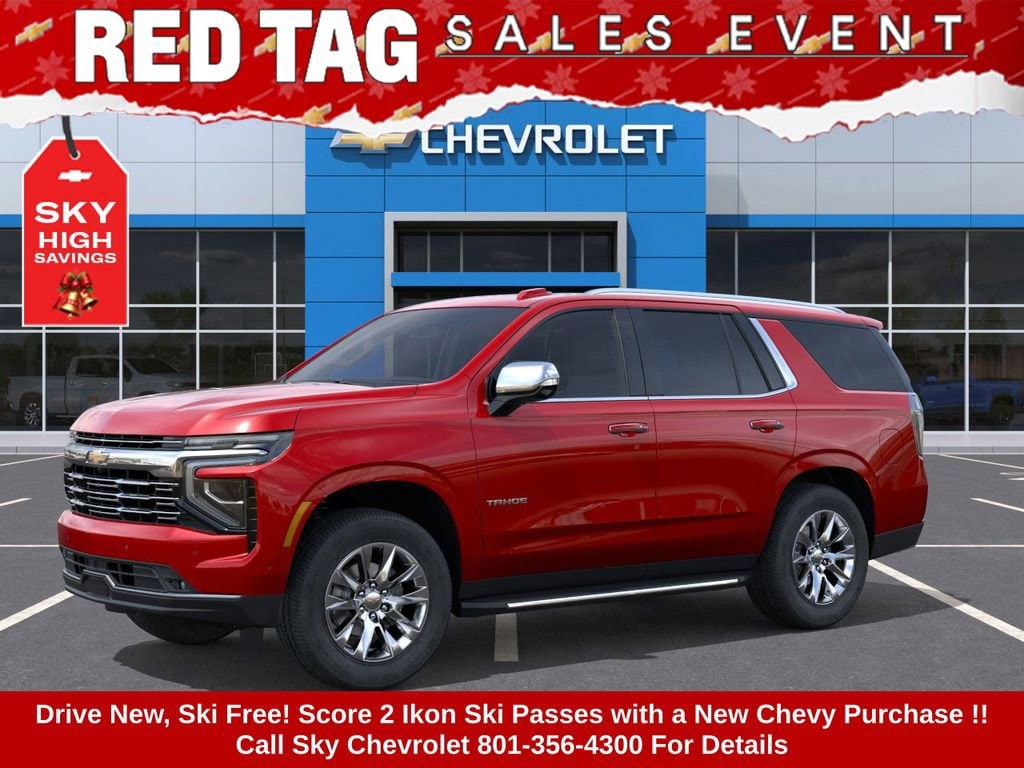 Experience the new Chevrolet Tahoe, available now at Sky Chevrolet of Provo! With bold design, advanced technology, and dependable performance, Chevrolet makes every mile more exciting. From Utah Valleyâs city streets to mountain canyon drives, the Tahoe is built to handle it all with confidence. Call 801-356-4300 today to schedule your test drive and see what makes it stand out! Radiant Red Tintcoat 2025 Chevrolet Tahoe Premier 4WD 10-Speed Automatic with Overdrive EcoTec3 5.3L V8 4WD, Black Leather. Price includes: $1000 - Chevrolet Consumer Cash Program $1,000 Down Payment Assistance. Must Finance with GM Financial. $1,500 trade in allowance program for customers that own a 2018 or newer passenger car or truck with less than 80,000 miles and trade in their vehicle towards the purchase of a new 2025-2026 New Chevrolet. Some restrictions may apply. Contact dealer for details.
