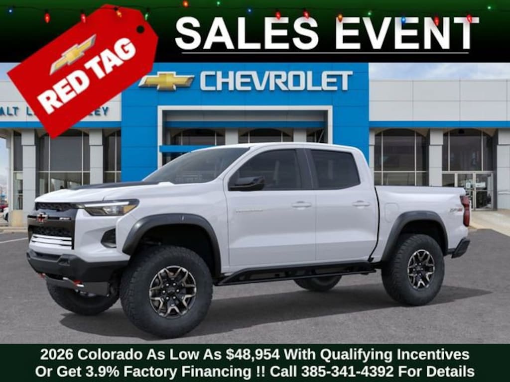 Discover the new Chevrolet Colorado at Salt Lake Valley Chevrolet in Salt Lake City! With bold design, modern technology, and reliable performance, Chevrolet makes every drive exciting. Whether itâs city streets or canyon roads, the Colorado is ready for anything. Call us today at 801-969-8221 to schedule a time to see it! --- 2026 Chevrolet Colorado Summit White 2.7L I4 Turbocharged DOHC 16V LEV3-ULEV50 310hp --- Final price excludes tax, tag, title, documentation fees, dealer-installed options, and any market-based pricing adjustments. Financing through GM Financial is required for all discounts to apply. Special finance offers may not be combined with certain factory incentives. While we strive for accuracy, errors may occur please verify all information with a sales representative. For the most accurate pricing, call (801) 969-8221 or visit us in person. Prices and payments are subject to change based on manufacturer incentives. - Price includes - $500 - Chevrolet Consumer Cash Program - Price includes $1,000 Down Payment Assistance. Must Finance with GM Financial - Price includes $1,500 trade in allowance program for customers that own a 2018 or newer passenger car or truck with less than 80,000 miles and trade in their vehicle towards the purchase of a new 2024-2025 Chevrolet. Some restrictions may apply. Contact dealer for details
