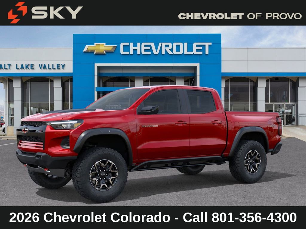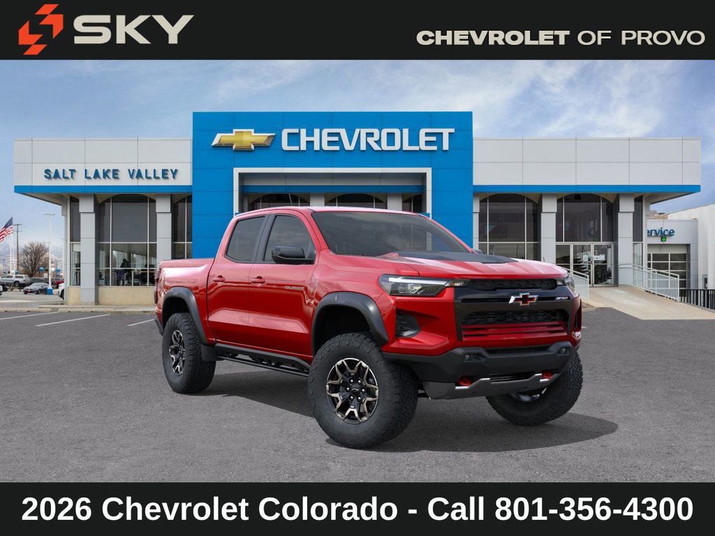 Experience the new Chevrolet Colorado, available now at Sky Chevrolet of Provo! With bold design, advanced technology, and dependable performance, Chevrolet makes every mile more exciting. From Utah Valleyâs city streets to mountain canyon drives, the Colorado is built to handle it all with confidence. Call 801-356-4300 today to schedule your test drive and see what makes it stand out! Radiant Red Tintcoat 2026 Chevrolet Colorado ZR2 4WD 8-Speed Automatic 2.7L I4 Turbocharged DOHC 16V LEV3-ULEV50 310hp 4WD.