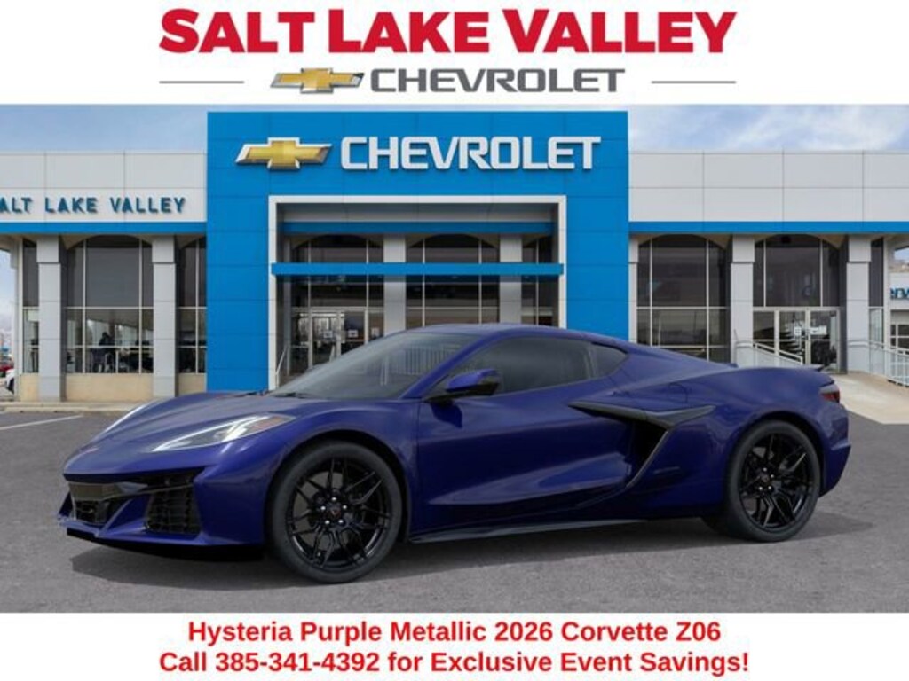 Discover the new Chevrolet Corvette at Salt Lake Valley Chevrolet in Salt Lake City! With bold design, modern technology, and reliable performance, Chevrolet makes every drive exciting. Whether itâs city streets or canyon roads, the Corvette is ready for anything. Call us today at 801-969-8221 to schedule a time to see it! --- 2026 Chevrolet Corvette Hysteria Purple Metallic 5.5L V8 Adaptive suspension, Automatic Leveling System Headlamp Control, Battery Protection Package. --- Final price excludes tax, tag, title, documentation fees, dealer-installed options, and any market-based pricing adjustments. Financing through GM Financial is required for all discounts to apply. Special finance offers may not be combined with certain factory incentives. While we strive for accuracy, errors may occur please verify all information with a sales representative. For the most accurate pricing, call (801) 969-8221 or visit us in person. Prices and payments are subject to change based on manufacturer incentives. - Price includes $1,000 Down Payment Assistance. Must Finance with GM Financial - Price includes $1,500 trade in allowance program for customers that own a 2018 or newer passenger car or truck with less than 80,000 miles and trade in their vehicle towards the purchase of a new 2024-2025 Chevrolet. Some restrictions may apply. Contact dealer for details