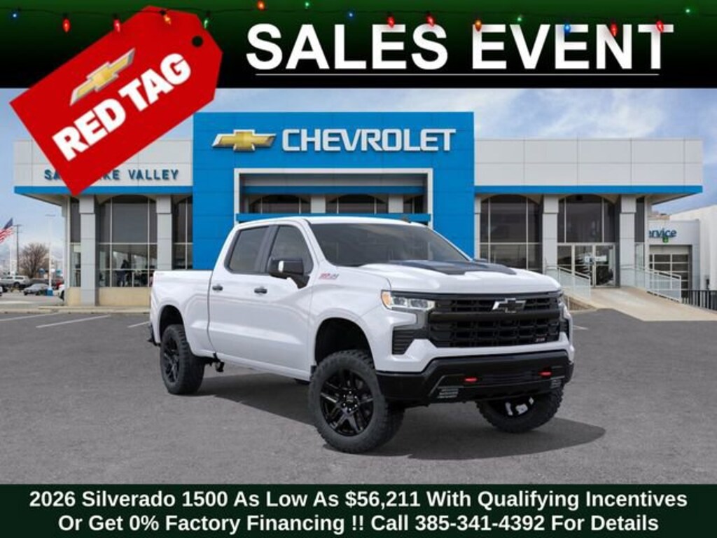 Discover the new Chevrolet Silverado 1500 at Salt Lake Valley Chevrolet in Salt Lake City! With bold design, modern technology, and reliable performance, Chevrolet makes every drive exciting. Whether itâs city streets or canyon roads, the Silverado 1500 is ready for anything. Call us today at 801-969-8221 to schedule a time to see it! --- 2026 Chevrolet Silverado 1500 Summit White 3.0L I6 --- Final price excludes tax, tag, title, documentation fees, dealer-installed options, and any market-based pricing adjustments. Financing through GM Financial is required for all discounts to apply. Special finance offers may not be combined with certain factory incentives. While we strive for accuracy, errors may occur please verify all information with a sales representative. For the most accurate pricing, call (801) 969-8221 or visit us in person. Prices and payments are subject to change based on manufacturer incentives. - Price includes - $1000 - Chevrolet Trade Assistance Bonus Cash Program $1750 - GM Bonus Cash $2500 - Chevrolet Consumer Cash Program - Price includes $1,000 Down Payment Assistance. Must Finance with GM Financial - Price includes $1,500 trade in allowance program for customers that own a 2018 or newer passenger car or truck with less than 80,000 miles and trade in their vehicle towards the purchase of a new 2024-2025 Chevrolet. Some restrictions may apply. Contact dealer for details