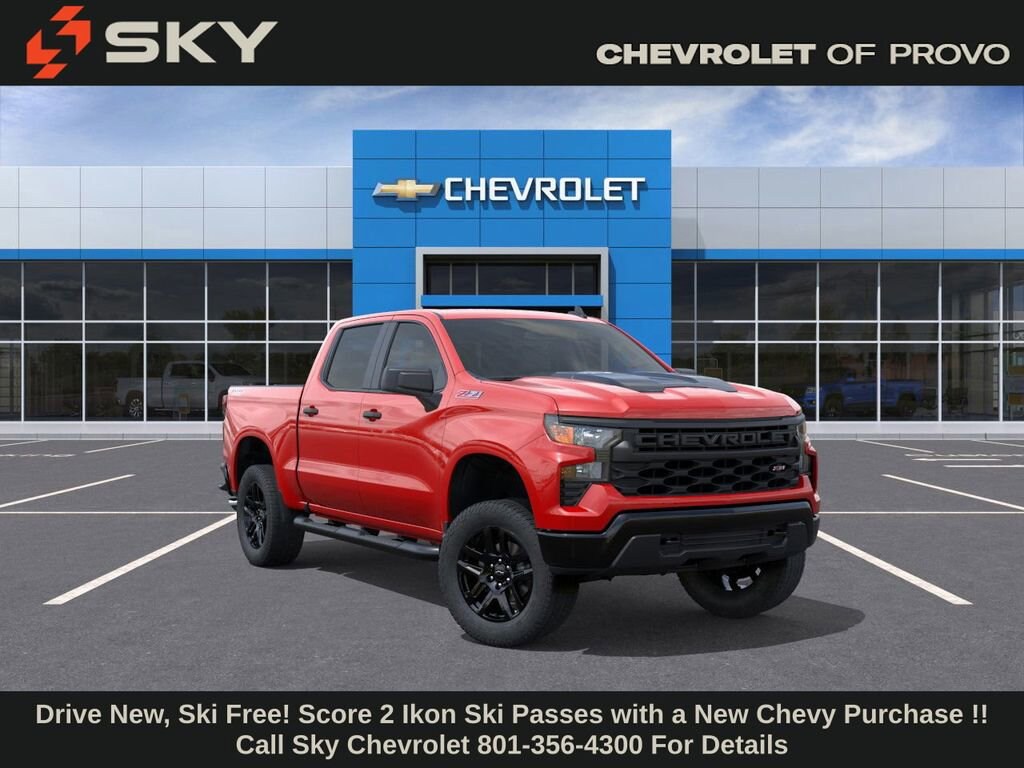 Experience the new Chevrolet Silverado 1500, available now at Sky Chevrolet of Provo! With bold design, advanced technology, and dependable performance, Chevrolet makes every mile more exciting. From Utah Valleyâs city streets to mountain canyon drives, the Silverado 1500 is built to handle it all with confidence. Call 801-356-4300 today to schedule your test drive and see what makes it stand out! Red Hot 2026 Chevrolet Silverado 1500 Custom Trail Boss 4WD 8-Speed Automatic 2.7L I4 Turbocharged DOHC 16V LEV3-SULEV30 310hp 8-Speed Automatic, 4WD, Jet Black Cloth.Recent Arrival! Price includes: $1000 - Chevrolet Select Market Bonus Cash $1000 - GM Bonus Cash $1750 - Chevrolet Consumer Cash Program
