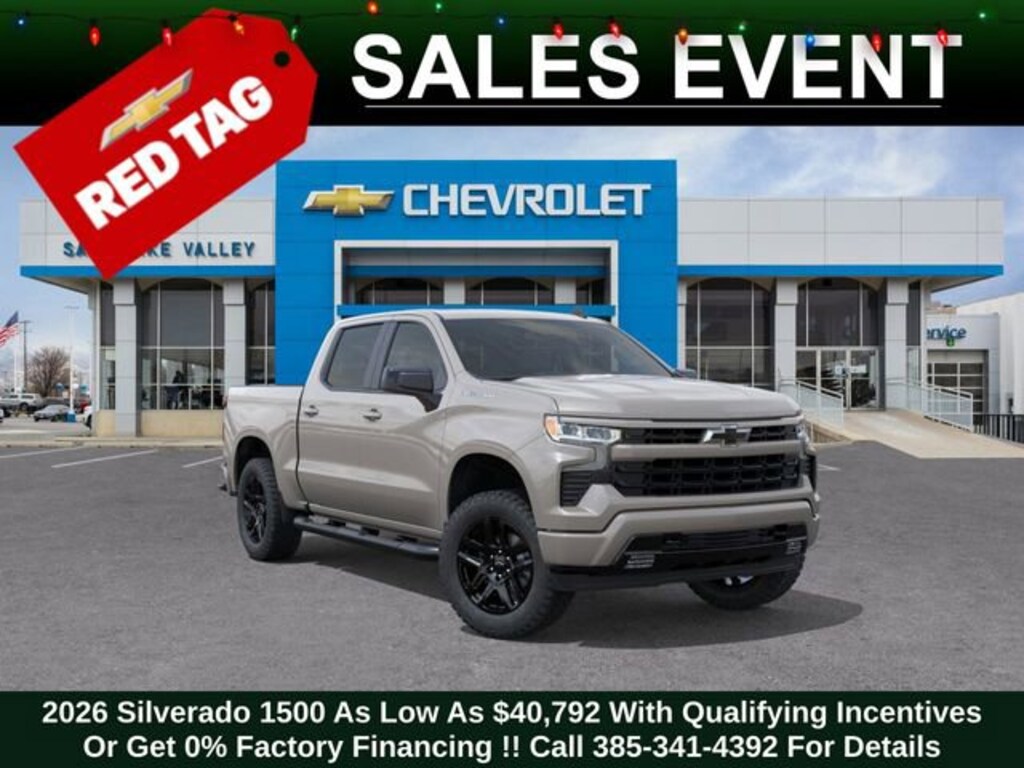 Recent Arrival! Discover the new Chevrolet Silverado 1500 at Salt Lake Valley Chevrolet in Salt Lake City! With bold design, modern technology, and reliable performance, Chevrolet makes every drive exciting. Whether itâs city streets or canyon roads, the Silverado 1500 is ready for anything. Call us today at 801-969-8221 to schedule a time to see it! --- 2026 Chevrolet Silverado 1500 White Sands 2.7L I4 Turbocharged DOHC 16V LEV3-SULEV30 310hp --- Final price excludes tax, tag, title, documentation fees, dealer-installed options, and any market-based pricing adjustments. Financing through GM Financial is required for all discounts to apply. Special finance offers may not be combined with certain factory incentives. While we strive for accuracy, errors may occur please verify all information with a sales representative. For the most accurate pricing, call (801) 969-8221 or visit us in person. Prices and payments are subject to change based on manufacturer incentives. - Price includes - $1000 - Chevrolet Select Market Bonus Cash $1000 - GM Bonus Cash $1250 - Chevrolet Trade Assistance Bonus Cash Program $3000 - Chevrolet Consumer Cash Program - Price includes $1,000 Down Payment Assistance. Must Finance with GM Financial - Price includes $1,500 trade in allowance program for customers that own a 2018 or newer passenger car or truck with less than 80,000 miles and trade in their vehicle towards the purchase of a new 2024-2025 Chevrolet. Some restrictions may apply. Contact dealer for details