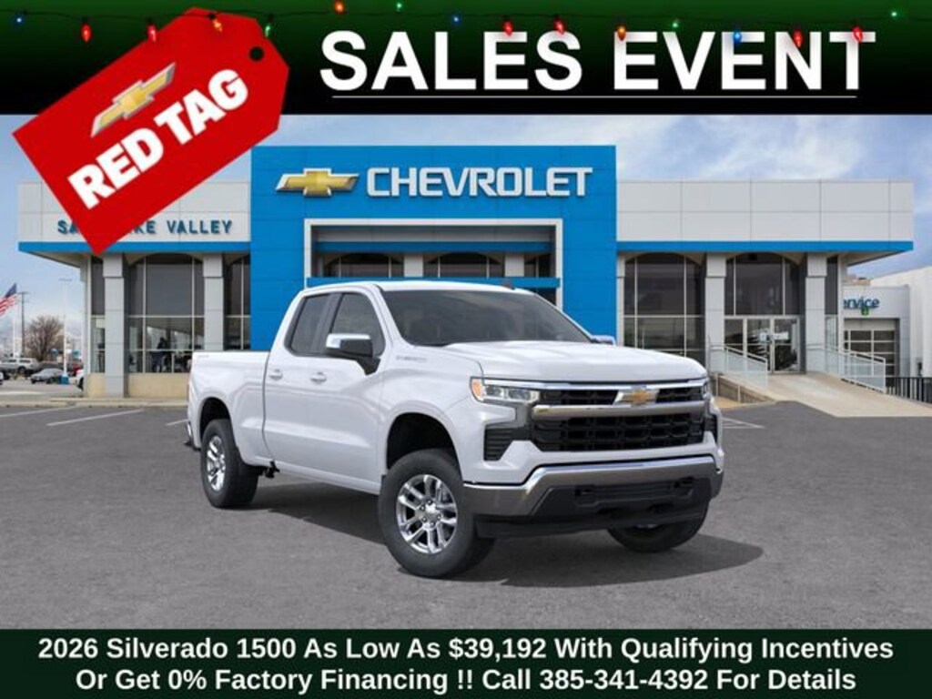 Recent Arrival! Discover the new Chevrolet Silverado 1500 at Salt Lake Valley Chevrolet in Salt Lake City! With bold design, modern technology, and reliable performance, Chevrolet makes every drive exciting. Whether itâs city streets or canyon roads, the Silverado 1500 is ready for anything. Call us today at 801-969-8221 to schedule a time to see it! --- 2026 Chevrolet Silverado 1500 Summit White 2.7L I4 Turbocharged DOHC 16V LEV3-SULEV30 310hp --- Final price excludes tax, tag, title, documentation fees, dealer-installed options, and any market-based pricing adjustments. Financing through GM Financial is required for all discounts to apply. Special finance offers may not be combined with certain factory incentives. While we strive for accuracy, errors may occur please verify all information with a sales representative. For the most accurate pricing, call (801) 969-8221 or visit us in person. Prices and payments are subject to change based on manufacturer incentives. - Price includes - $1000 - Chevrolet Select Market Bonus Cash $1250 - Chevrolet Trade Assistance Bonus Cash Program $2500 - Chevrolet Consumer Cash Program $500 - GM Bonus Cash - Price includes $1,000 Down Payment Assistance. Must Finance with GM Financial - Price includes $1,500 trade in allowance program for customers that own a 2018 or newer passenger car or truck with less than 80,000 miles and trade in their vehicle towards the purchase of a new 2024-2025 Chevrolet. Some restrictions may apply. Contact dealer for details