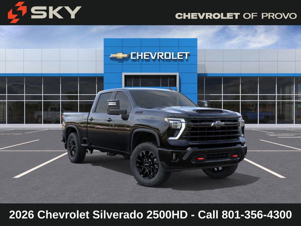 Experience the new Chevrolet Silverado 2500HD, available now at Sky Chevrolet of Provo! With bold design, advanced technology, and dependable performance, Chevrolet makes every mile more exciting. From Utah Valleyâs city streets to mountain canyon drives, the Silverado 2500HD is built to handle it all with confidence. Call 801-356-4300 today to schedule your test drive and see what makes it stand out! Black 2026 Chevrolet Silverado 2500HD LT 4WD 10-Speed Automatic 6.6L V8 10-Speed Automatic, 4WD, Jet Black Cloth. Price includes: $1000 - Chevrolet Consumer Cash Program $1,000 Down Payment Assistance. Must Finance with GM Financial. $1,500 trade in allowance program for customers that own a 2018 or newer passenger car or truck with less than 80,000 miles and trade in their vehicle towards the purchase of a new 2025-2026 New Chevrolet. Some restrictions may apply. Contact dealer for details.