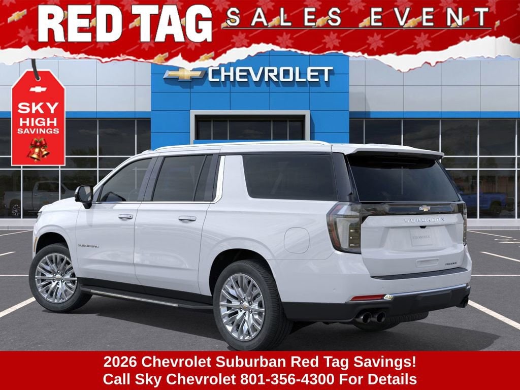 Experience the new Chevrolet Suburban, available now at Sky Chevrolet of Provo! With bold design, advanced technology, and dependable performance, Chevrolet makes every mile more exciting. From Utah Valleyâs city streets to mountain canyon drives, the Suburban is built to handle it all with confidence. Call 801-356-4300 today to schedule your test drive and see what makes it stand out! Polar White Tricoat 2026 Chevrolet Suburban Premier 4WD 10-Speed Automatic with Overdrive EcoTec3 5.3L V8 $1,000 Down Payment Assistance. Must Finance with GM Financial. $1,500 trade in allowance program for customers that own a 2018 or newer passenger car or truck with less than 80,000 miles and trade in their vehicle towards the purchase of a new 2025-2026 New Chevrolet. Some restrictions may apply. Contact dealer for details.