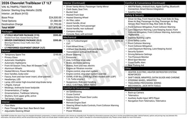 Discover the new Chevrolet TrailBlazer at Salt Lake Valley Chevrolet in Salt Lake City! With bold design, modern technology, and reliable performance, Chevrolet makes every drive exciting. Whether itâs city streets or canyon roads, the TrailBlazer is ready for anything. Call us today at 801-969-8221 to schedule a time to see it! --- 2026 Chevrolet TrailBlazer Sterling Gray Metallic 1.3L I3 Turbocharged DOHC 12V LEV3-SULEV30 137hp --- Final price excludes tax, tag, title, documentation fees, dealer-installed options, and any market-based pricing adjustments. Financing through GM Financial is required for all discounts to apply. Special finance offers may not be combined with certain factory incentives. While we strive for accuracy, errors may occur please verify all information with a sales representative. For the most accurate pricing, call (801) 969-8221 or visit us in person. Prices and payments are subject to change based on manufacturer incentives.