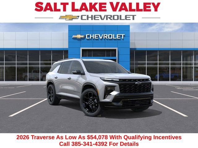 Discover the new Chevrolet Traverse at Salt Lake Valley Chevrolet in Salt Lake City! With bold design, modern technology, and reliable performance, Chevrolet makes every drive exciting. Whether itâs city streets or canyon roads, the Traverse is ready for anything. Call us today at 801-969-8221 to schedule a time to see it! --- 2026 Chevrolet Traverse Sterling Gray Metallic 2.5L DOHC --- Final price excludes tax, tag, title, documentation fees, dealer-installed options, and any market-based pricing adjustments. Financing through GM Financial is required for all discounts to apply. Special finance offers may not be combined with certain factory incentives. While we strive for accuracy, errors may occur please verify all information with a sales representative. For the most accurate pricing, call (801) 969-8221 or visit us in person. Prices and payments are subject to change based on manufacturer incentives. - Price includes - $1000 - Chevrolet Bonus Cash - Price includes $1,500 trade in allowance program for customers that own a 2018 or newer passenger car or truck with less than 80,000 miles and trade in their vehicle towards the purchase of a new 2024-2025 Chevrolet. Some restrictions may apply. Contact dealer for details