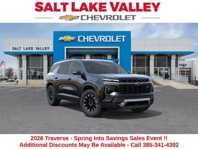 Discover the new Chevrolet Traverse at Salt Lake Valley Chevrolet in Salt Lake City! With bold design, modern technology, and reliable performance, Chevrolet makes every drive exciting. Whether itâs city streets or canyon roads, the Traverse is ready for anything. Call us today at 801-969-8221 to schedule a time to see it! --- 2026 Chevrolet Traverse Mosaic Black Metallic 2.5L DOHC --- Final price excludes tax, tag, title, documentation fees, dealer-installed options, and any market-based pricing adjustments. Financing through GM Financial is required for all discounts to apply. Special finance offers may not be combined with certain factory incentives. While we strive for accuracy, errors may occur please verify all information with a sales representative. For the most accurate pricing, call (801) 969-8221 or visit us in person. Prices and payments are subject to change based on manufacturer incentives. - Price includes - - Price includes $1,500 Trade-In Allowance for customers trading a 2019 or newer passenger car or truck with under 80,000 miles toward a new 2025 2026 Chevrolet. Branded or salvage title vehicles do not qualify. Some restrictions apply. See dealer for details.