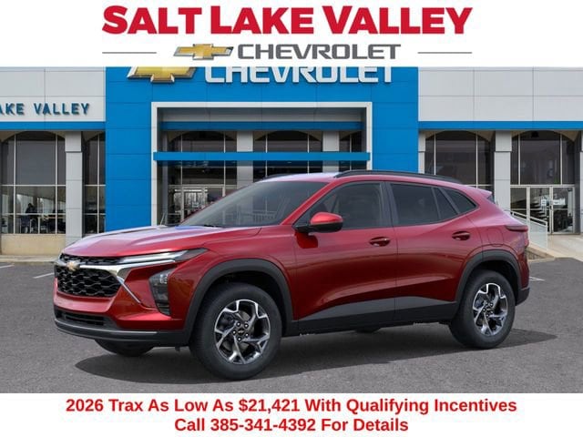 Discover the new Chevrolet Trax at Salt Lake Valley Chevrolet in Salt Lake City! With bold design, modern technology, and reliable performance, Chevrolet makes every drive exciting. Whether itâs city streets or canyon roads, the Trax is ready for anything. Call us today at 801-969-8221 to schedule a time to see it! --- 2026 Chevrolet Trax Apex Red ECOTEC 1.2L Turbo --- Final price excludes tax, tag, title, documentation fees, dealer-installed options, and any market-based pricing adjustments. Financing through GM Financial is required for all discounts to apply. Special finance offers may not be combined with certain factory incentives. While we strive for accuracy, errors may occur please verify all information with a sales representative. For the most accurate pricing, call (801) 969-8221 or visit us in person. Prices and payments are subject to change based on manufacturer incentives. - Price includes $1,000 Down Payment Assistance. Must Finance with GM Financial - Price includes $1,500 trade in allowance program for customers that own a 2018 or newer passenger car or truck with less than 80,000 miles and trade in their vehicle towards the purchase of a new 2024-2025 Chevrolet. Some restrictions may apply. Contact dealer for details