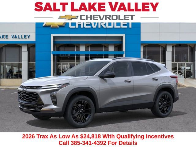 Discover the new Chevrolet Trax at Salt Lake Valley Chevrolet in Salt Lake City! With bold design, modern technology, and reliable performance, Chevrolet makes every drive exciting. Whether itâs city streets or canyon roads, the Trax is ready for anything. Call us today at 801-969-8221 to schedule a time to see it! --- 2026 Chevrolet Trax Sterling Gray Metallic ECOTEC 1.2L Turbo --- Final price excludes tax, tag, title, documentation fees, dealer-installed options, and any market-based pricing adjustments. Financing through GM Financial is required for all discounts to apply. Special finance offers may not be combined with certain factory incentives. While we strive for accuracy, errors may occur please verify all information with a sales representative. For the most accurate pricing, call (801) 969-8221 or visit us in person. Prices and payments are subject to change based on manufacturer incentives. - Price includes - - Price includes $1,000 Down Payment Assistance. Must Finance with GM Financial - Price includes $1,500 trade in allowance program for customers that own a 2018 or newer passenger car or truck with less than 80,000 miles and trade in their vehicle towards the purchase of a new 2024-2025 Chevrolet. Some restrictions may apply. Contact dealer for details