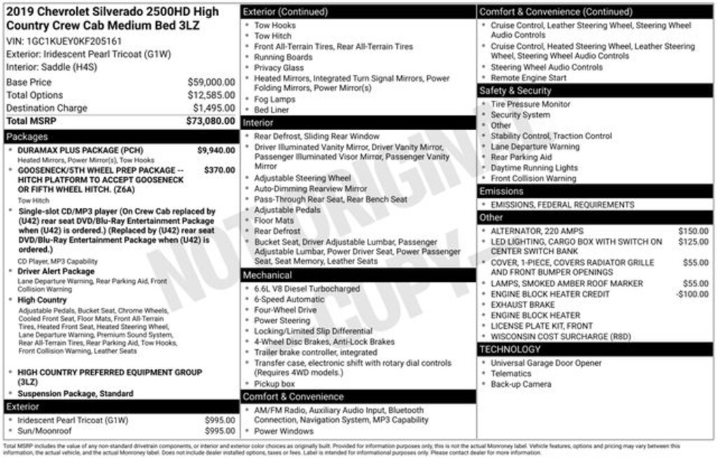 We quickly nicknamed our truck "The Beast". Have had it for 2yrs. It is very comfortable, very quiet, has a well laid out dashboard with easy to read gauges. I've been pulling our 8,000 RV trailer and have gone from Prince Edward Island to Nevada... if I didn't look in the rearview mirror I'd never know I was pulling the trailer. Excellent brakes and good handling. So far my only complaint is the ridiculous place GM put the DEF fluid intake - its in the engine compartment next to the firewall, nearly impossible to fill with out spilling DEF. It could use more storage space for tools... but that's about it. Its a tough powerful truck.…