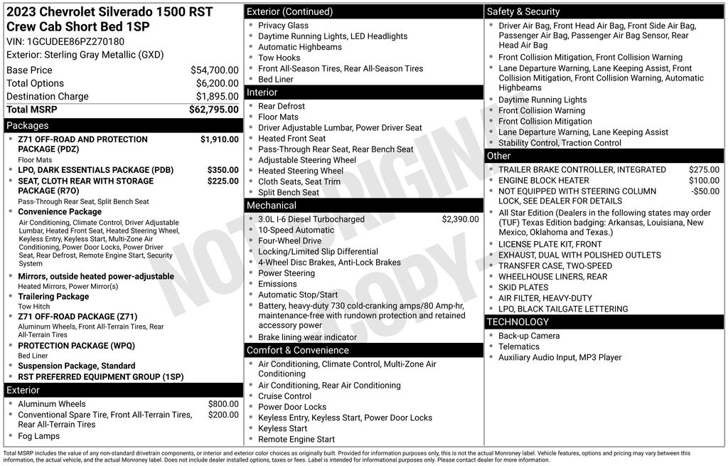 Check out our award winning dealership! 5-star google review, drive a little save a lot. Cloth Rear Seat w/Storage Package, Convenience Package (10-Way Power Driver Seat w/Lumbar, 120-Volt Bed Mounted Power Outlet, 120-Volt Instrument Panel Power Outlet, Dual Rear USB Ports (Charge Only), Dual-Zone Automatic Climate Control, Electric Rear-Window Defogger, Heated Driver & Front Outboard Passenger Seats, Heated Steering Wheel, Keyless Open & Start, Remote Vehicle Starter System, Theft Deterrent System (Unauthorized Entry), and Wrapped Steering Wheel), Dark Essentials Package (LPO) (Black Name Plates (LPO)), High Capacity Suspension Package, Preferred Equipment Group 1SP (12.3" Multicolor Reconfigurable Digital Display, 6-Speaker Audio System, All-Star Edition, Auto-Locking Rear Differential, Bluetooth® For Phone, Chevrolet Connected Access Capable, Color-Keyed Carpeting Floor Covering, Compass, Deep-Tinted Glass, Electrical Steering Column Lock, Electronic Cruise Control, EZ Lift Power Lock & Release Tailgate, Front Frame-Mounted Black Recovery Hooks, Front LED Fog Lamps, Front Rubberized Vinyl Floor Mats, HD Rear Vision Camera, Heated Power-Adjustable Outside Mirrors, High Gloss Black Mirror Caps, Inside Rear-View Mirror w/Tilt, LED Cargo Area Lighting, OnStar & Chevrolet Connected Services Capable, Power Front Windows w/Driver Express Up/Down, Power Front Windows w/Passenger Express Down, Power Rear Windows w/Express Down, Rear 60/40 Folding Bench Seat (Folds Up), Rear Rubberized-Vinyl Floor Mats, SiriusXM w/360L, Standard Tailgate, Steering Wheel Audio Controls, Wi-Fi Hot Spot Capable, and Wireless Phone Projection), Protection Package (Chevytec Spray-On Black Bedliner and Rear Wheelhouse Liners), Standard Suspension Package, Trailering Package (Hitch Guidance), Z71 Off-Road & Protection Package (All-Weather Floor Liner (LPO) (AAK)), Z71 Off-Road Package (Dual Exhaust w/Polished Outlets, Heavy-Duty Air Filter, Hill Descent Control, and Off-Road Suspension), 10-Speed Automatic, 4WD, Black Cloth, 220 Amp Alternator, 3.23 Rear Axle Ratio, 4-Wheel Disc Brakes, 40/20/40 Front Split-Bench Seat, 6 Speakers, ABS brakes, Air Conditioning, Alloy wheels, AM/FM radio: SiriusXM with 360L, Apple CarPlay/Android Auto, Auto High-beam Headlights, Automatic Emergency Braking, Automatic temperature control, Black Tailgate CHEVROLET Lettering (LPO), Brake assist, Bumpers: body-color, Cloth Seat Trim, Delay-off headlights, Driver door bin, Driver vanity mirror, Dual front impact airbags, Dual front side impact airbags, Electronic Stability Control, Engine Block Heater, Following Distance Indicator, Forward Collision Alert, Front anti-roll bar, Front Center Armrest w/Storage, Front dual zone A/C, Front fog lights, Front License Plate Kit, Front Pedestrian Braking, Front reading lights, Front wheel independent suspension, Fully automatic headlights, Heated door mirrors, Heated front seats, Heated steering wheel, Illuminated entry, Integrated Trailer Brake Controller, IntelliBeam Automatic High Beam On/Off, Lane Keep Assist w/Lane Departure Warning, Low tire pressure warning, Not Equipped w/Steering Column Lock, Occupant sensing airbag, Outside temperature display, Overhead airbag, Overhead console, Panic alarm, Passenger door bin, Passenger vanity mirror, Power door mirrors, Power driver seat, Power steering, Power windows, Premium audio system: Chevrolet Infotainment 3 Premium, Radio data system, Radio: Chevrolet Infotainment 3 Premium System, Rear reading lights, Rear step bumper, Rear window defroster, Remote keyless entry, Security system, Speed control, Speed-sensing steering, Split folding rear seat, Steering wheel mounted audio controls, Tachometer, Telescoping steering wheel, Tilt steering wheel, Traction control, Trip computer, Variably intermitten