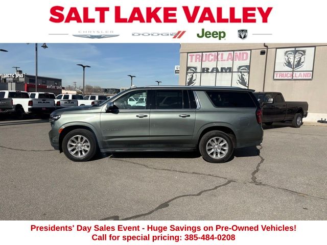 Get ready to hit the road in this Chevrolet Suburban, a standout choice for drivers looking for reliability, performance, and style! This impressive vehicle is packed with premium features designed to make every drive more enjoyable. Plus, youâll enjoy a $1,000 finance savings, already included in the sale price, when you finance through one of our trusted lending partners. Whether youâre searching for used cars in Salt Lake City, a dependable SUV, or a powerful truck, this Chevrolet Suburban delivers everything you need and more. Visit Salt Lake Valley Chrysler Dodge Jeep Ram today to test drive or explore our entire selection of quality pre-owned vehicles. Donât wait - shop online at www.slvcdjr.com or call 801-484-8755 to learn more! This amazing vehicle comes loaded with options like License Plate Front Mounting Package, Preferred Equipment Group 1LZ (1st & 2nd Row Color-Keyed Carpeted Floor Mats, 2-Speed Active Electronic AutoTrac Transfer Case, 3rd Row 60/40 Power-Folding Split-Bench, Auto-Dimming Inside Rear-View Mirror, Bose 10-Speaker Surround w/CenterPoint, Bright Front & Rear Door Sill Plates, Chrome Door Handles w/Body-Color Strip, Chrome Mirror Caps, Color-Keyed Carpeting Floor Covering, Driver & Front Outboard Passenger Airbags, Dual Exhaust System, Enhanced Driver Information Center, Floor Console, Hands-Free Rear Power Programmable Liftgate, Heated & Ventilated Driver & Front Passenger Seats, Heated 2nd Row Outboard Seats, Heated Driver & Front Passenger Seats, Heated Steering Wheel, Hill Descent Control, Infotainment Display, Lane Change Alert w/Side Blind Zone Alert, LED Daytime Running Lamps, Memory Settings, Outside Heated Power-Adjustable Mirrors, Power Release 2nd Row Bucket Seats, Power Tilt & Telescopic Steering Column, Rear Cross Traffic Alert, Remote Start, Safety Alert Seat, SiriusXM Radio w/360L, Universal Home Remote, Wireless Charging, and Wrapped Steering Wheel), 10 Speakers, 20" x 9" Polished Aluminum Wheels, 3.23 Rear Axle Ratio, 3rd row seats: split-bench, 4-Wheel Disc Brakes, ABS brakes, Adaptive suspension, Air Conditioning, Alloy wheels, AM/FM radio: SiriusXM with 360L, Apple CarPlay/Android Auto, Auto High-beam Headlights, Auto-dimming door mirrors, Auto-dimming Rear-View mirror, Auto-leveling suspension, Automatic temperature control, Brake assist, Bumpers: body-color, Compass, Delay-off headlights, Deleted 3 Years of Remote Access, Driver door bin, Driver vanity mirror, Dual front impact airbags, Dual front side impact airbags, Electronic Stability Control, Emergency communication system: OnStar and Chevrolet connected services capable, Four wheel independent suspension, Front anti-roll bar, Front Bucket Seats, Front Center Armrest, Front dual zone A/C, Front reading lights, Fully automatic headlights, Garage door transmitter, Heated door mirrors, Heated front seats, Heated rear seats, Heated steering wheel, Illuminated entry, Low tire pressure warning, Magnetic Ride Control Suspension, Memory seat, Navigation System, Occupant sensing airbag, Outside temperature display, Overhead airbag, Overhead console, Panic alarm, Passenger door bin, Passenger vanity mirror, Perforated Leather Seating Surfaces, Power door mirrors, Power driver seat, Power Liftgate, Power passenger seat, Power steering, Power windows, Premium audio system: Chevrolet Infotainment 3 Premium, Radio: Chevrolet Infotainment 3 Premium System, Rain sensing wipers, Rear air conditioning, Rear anti-roll bar, Rear reading lights, Rear window defroster, Rear window wiper, Remote keyless entry, Roof rack: rails only, Security system, Speed control, Speed-sensing steering, Split folding rear seat, Spoiler, Steering wheel memory, Steering wheel mounted audio controls, Tachometer, Telescoping steering wheel, Tilt steering wheel, Traction control, Trip computer, Turn signal indicator mirrors, Variably intermittent wipers, Ventilated front seats, and Voltmeter, making it the perfect choice for your next adventure.