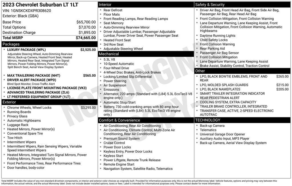 Black 2023 Chevrolet Suburban LT 4WD 10-Speed Automatic with Overdrive EcoTec3 5.3L V8