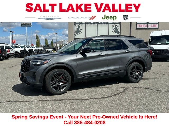Get ready to hit the road in this Ford Explorer, a standout choice for drivers looking for reliability, performance, and style! This impressive vehicle is packed with premium features designed to make every drive more enjoyable. Price excludes tax, title, license fee, government fees, and $449 dealer documentary service fee. While every reasonable effort is made to ensure accuracy, we are not responsible for errors or omissions, and vehicles may be sold prior to inquiryâ"please contact the dealer to confirm availability. All financing is subject to approved credit. Whether youâre searching for used cars in Salt Lake City, a dependable SUV, or a powerful truck, this Ford Explorer delivers everything you need and more. Visit Salt Lake Valley Chrysler Dodge Jeep Ram today to test drive or explore our entire selection of quality pre-owned vehicles. Donât wait - shop online at www.slvcdjr.com or call 801-484-8755 to learn more! This amazing vehicle comes loaded with options like Equipment Group 300A Standard Package, ST-Line Street Pack (Performance Brakes, Red Painted Perf Front & Rear Brake Calipers, and Wheels: 21" Magnetite-Painted Aluminum), 10 Speakers, 3.58 Non-Limited Slip Rear Axle, 3rd row seats: bench, 4-Wheel Disc Brakes, ABS brakes, Air Conditioning, Alloy wheels, AM/FM radio: SiriusXM with 360L, Apple CarPlay/Android Auto, Auto High-beam Headlights, Automatic temperature control, Brake assist, Bumpers: body-color, Compass, Delay-off headlights, Driver door bin, Driver vanity mirror, Dual front impact airbags, Dual front side impact airbags, Electronic Stability Control, Emergency communication system: 911 Assist, Exterior Parking Camera Rear, Four wheel independent suspension, Front anti-roll bar, Front Bucket Seats, Front Center Armrest, Front dual zone A/C, Front fog lights, Front License Plate Bracket, Front reading lights, Fully automatic headlights, Garage door transmitter, Heated door mirrors, Heated front seats, Heated steering wheel, Heated Unique Cloth Captain's Chairs, Illuminated entry, Internet access capable: FordPass Connect 5G, Knee airbag, Leather steering wheel, Low tire pressure warning, Navigation System, Occupant sensing airbag, Outside temperature display, Overhead airbag, Overhead console, Panic alarm, Passenger door bin, Passenger vanity mirror, Power door mirrors, Power driver seat, Power Liftgate, Power passenger seat, Power steering, Power windows, Radio: B&O Sound System by Bang & Olufsen, Rear air conditioning, Rear anti-roll bar, Rear reading lights, Rear window defroster, Rear window wiper, Remote keyless entry, Security system, Speed control, Speed-sensing steering, Speed-Sensitive Wipers, Split folding rear seat, Spoiler, Steering wheel mounted audio controls, Tachometer, Telescoping steering wheel, Tilt steering wheel, Traction control, Trip computer, Variably intermittent wipers, and Wheels: 20" Ebony-Painted Machined Aluminum, making it the perfect choice for your next adventure.