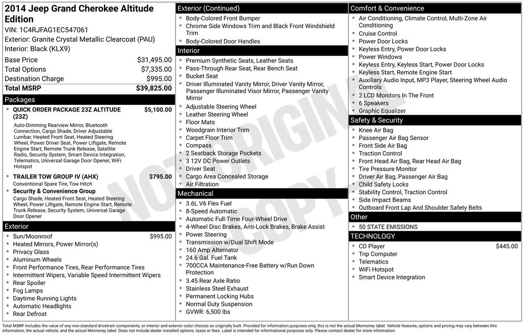 Granite Crystal Metallic Clearcoat 2014 Jeep Grand Cherokee Altitude 4WD 8-Speed Automatic 3.6L V6 Flex Fuel 24V VVT 4WD.