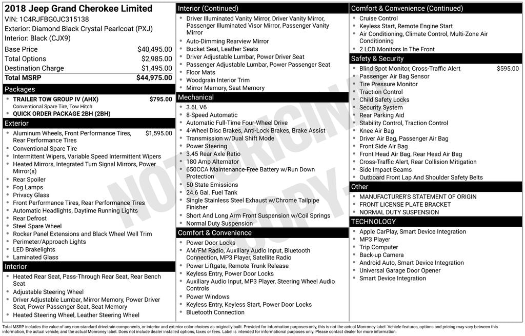 Diamond Black Crystal Pearlcoat 2018 Jeep Grand Cherokee Limited 4WD 8-Speed Automatic 3.6L V6 24V VVT 4WD.