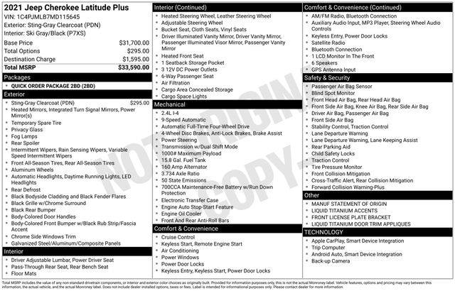 Get ready to hit the road in this Jeep Cherokee, a standout choice for drivers looking for reliability, performance, and style! This impressive vehicle is packed with premium features designed to make every drive more enjoyable. Plus, youâll enjoy a $1,000 finance savings, already included in the sale price, when you finance through one of our trusted lending partners. Whether youâre searching for used cars in Salt Lake City, a dependable SUV, or a powerful truck, this Jeep Cherokee delivers everything you need and more. Visit Salt Lake Valley Chrysler Dodge Jeep Ram today to test drive or explore our entire selection of quality pre-owned vehicles. Donât wait - shop online at www.slvcdjr.com or call 801-484-8755 to learn more! This amazing vehicle comes loaded with options like Quick Order Package 2BD, 3.734 Axle Ratio, 4-Wheel Disc Brakes, 6 Speakers, ABS brakes, Air Conditioning, Alloy wheels, AM/FM radio: SiriusXM, Anti-whiplash front head restraints, Apple CarPlay/Android Auto, Brake assist, Bumpers: body-color, Cloth/Premium Vinyl Bucket Seats, Compass, Delay-off headlights, Driver door bin, Driver vanity mirror, Dual front impact airbags, Dual front side impact airbags, Electronic Stability Control, Four wheel independent suspension, Front anti-roll bar, Front Bucket Seats, Front Center Armrest, Front fog lights, Front License Plate Bracket, Front reading lights, Fully automatic headlights, Heated door mirrors, Heated front seats, Heated steering wheel, Illuminated entry, Knee airbag, Leather Shift Knob, Liquid Titanium Accents, Liquid Titanium Door Trim Appliques, Low tire pressure warning, Manuf Statement of Origin, Normal Duty Suspension, Occupant sensing airbag, Outside temperature display, Overhead airbag, Overhead console, Panic alarm, ParkView Rear Back-Up Camera, Passenger door bin, Passenger vanity mirror, Power door mirrors, Power driver seat, Power steering, Power windows, Radio data system, Radio: Uconnect 4 w/7" Display, Rain sensing wipers, Rear anti-roll bar, Rear reading lights, Rear seat center armrest, Rear side impact airbag, Rear window defroster, Rear window wiper, Remote keyless entry, Speed control, Speed-sensing steering, Split folding rear seat, Spoiler, Steering wheel mounted audio controls, Tachometer, Telescoping steering wheel, Tilt steering wheel, Traction control, Trip computer, Turn signal indicator mirrors, Variably intermittent wipers, Voltmeter, and Wheels: 17" x 7" Satin Carbon Aluminum, making it the perfect choice for your next adventure.