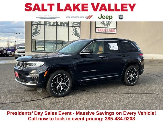 Get ready to hit the road in this Jeep Grand Cherokee, a standout choice for drivers looking for reliability, performance, and style! This impressive vehicle is packed with premium features designed to make every drive more enjoyable. Plus, youâll enjoy a $1,000 finance savings, already included in the sale price, when you finance through one of our trusted lending partners. Whether youâre searching for used cars in Salt Lake City, a dependable SUV, or a powerful truck, this Jeep Grand Cherokee delivers everything you need and more. Visit Salt Lake Valley Chrysler Dodge Jeep Ram today to test drive or explore our entire selection of quality pre-owned vehicles. Donât wait - shop online at www.slvcdjr.com or call 801-484-8755 to learn more! This amazing vehicle comes loaded with options like Advanced Protech Group IV (Heads-Up Display, Night Vision/Pedestrian-Animal Detection, and Rearview Autodim Digital Display Mirror), Luxury Tech Group V (2nd-Row Manual Window Shades and Wireless Charging Pad), Quick Order Package 27U Summit Reserve 4xe (19 Speaker High Performance Audio, 950 Watt Amplifier, Active Noise Control System, Deluxe Headliner, Front Passenger Interactive Display, Palermo Leather Door Trim, Palermo Leather Seats, Summit Reserve, Summit Reserve Badge, Ventilated Rear Seats, and Wheels: 21" x 9" Machined Face/Painted Aluminum), Two Tone Paint Group, 10 Speakers, 3.70 Rear Axle Ratio, 4-Wheel Disc Brakes, ABS brakes, Adaptive suspension, Air Conditioning, Alloy wheels, AM/FM radio: SiriusXM with 360L, Anti-whiplash front head restraints, Audio memory, Auto High-beam Headlights, Auto-dimming door mirrors, Auto-dimming Rear-View mirror, Auto-leveling suspension, Automatic temperature control, Brake assist, Bumpers: body-color, Compass, Delay-off headlights, Driver door bin, Driver vanity mirror, Dual front impact airbags, Dual front side impact airbags, Electronic Stability Control, Four wheel independent suspension, Front anti-roll bar, Front Bucket Seats, Front Center Armrest w/Storage, Front dual zone A/C, Front fog lights, Front reading lights, Fully automatic headlights, Garage door transmitter, Genuine wood dashboard insert, Genuine wood door panel insert, Heated door mirrors, Heated front seats, Heated rear seats, Heated steering wheel, Heavy Duty Suspension, Illuminated entry, Knee airbag, Leather steering wheel, Low tire pressure warning, Memory seat, Nappa Leather Seats, Navigation System, Occupant sensing airbag, Outside temperature display, Overhead airbag, Overhead console, Panic alarm, Passenger door bin, Passenger vanity mirror, Power door mirrors, Power driver seat, Power Liftgate, Power moonroof, Power passenger seat, Power steering, Power windows, Radio data system, Radio: Uconnect 5 Nav w/10.1" Display, Rain sensing wipers, Rear air conditioning, Rear anti-roll bar, Rear dual zone A/C, Rear reading lights, Rear seat center armrest, Rear window defroster, Rear window wiper, Remote keyless entry, Roof rack: rails only, Security system, Speed control, Speed-Sensitive Wipers, Split folding rear seat, Spoiler, Steering wheel memory, Steering wheel mounted audio controls, Tachometer, Telescoping steering wheel, Tilt steering wheel, Traction control, Trip computer, Turn signal indicator mirrors, Variably intermittent wipers, Ventilated front seats, Voltmeter, and Wheels: 20" x 8.5" Fully Painted Aluminum Silver, making it the perfect choice for your next adventure.