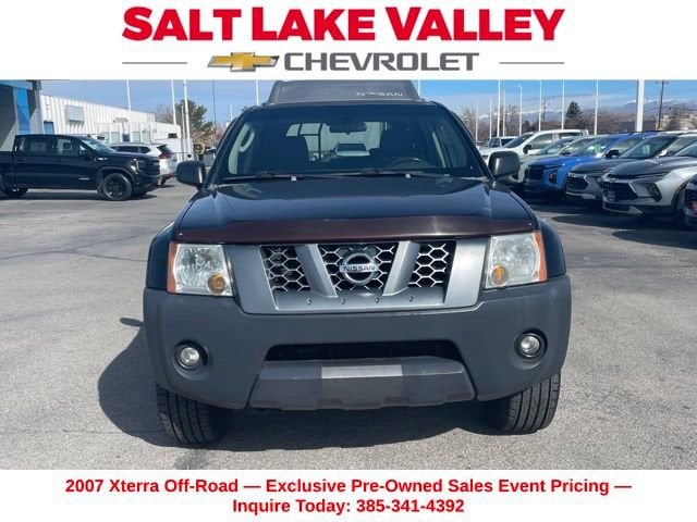 Turn every drive into something special with this Nissan Xterra from Salt Lake Valley Chevrolet! Designed for comfort, performance, and style, this vehicle comes fully equipped with modern technology and convenience features youâll love. Plus, enjoy a $1,000 finance savings, already included in the sale price, when you finance through one of our trusted lending partners. If youâre shopping for used cars in Salt Lake City, or searching for the perfect SUV, truck, or sedan, this Nissan Xterra delivers the dependability and value youâre looking for. Itâs the ideal match for your lifestyle - ready for everything from mountain adventures to city commutes. Visit Salt Lake Valley Chevrolet today and see why so many Utah drivers trust us for great deals on quality pre-owned vehicles. Explore our inventory online at www.slvchevy.com or call 801-969-8221 to schedule your test drive today! This impressive vehicle includes Protection Package (All Season Mats and Emergency Kit), Rockford Fosgate Audio Package, Side & Curtain Airbags Package (Roof-Mounted Curtain Side Airbags), Tow Package, 16 Aluminum Alloy 6-Spoke Off Road Wheels, 2 DIN AM/FM Single CD Audio System, 3.538 Axle Ratio, 4-Wheel Disc Brakes, 6 Speakers, ABS brakes, Adjustable Cargo Organizer, Air Conditioning, Alloy wheels, AM/FM radio, Anti-whiplash front head restraints, Bodyside moldings, CD player, Driver door bin, Driver vanity mirror, Dual front impact airbags, Electronic Stability Control, Front anti-roll bar, Front Bucket Seats, Front Center Armrest, Front fog lights, Front reading lights, Front wheel independent suspension, Illuminated entry, Leather steering wheel, Low tire pressure warning, Occupant sensing airbag, Overhead console, Panic alarm, Passenger door bin, Passenger vanity mirror, Power door mirrors, Power steering, Power windows, Premium Cloth Seat Trim, Rear anti-roll bar, Rear window defroster, Rear window wiper, Regular Ride Suspension, Remote keyless entry, Roof rack, Security system, Speed control, Speed-sensing steering, Split folding rear seat, Tachometer, Tilt steering wheel, Towing Receiver Hitch, Traction control, Variably intermittent wipers, and Voltmeter, offering everything you need for your next adventure.