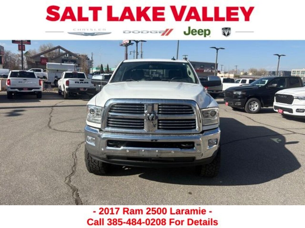 Get ready to hit the road in this Ram 2500, a standout choice for drivers looking for reliability, performance, and style! This impressive vehicle is packed with premium features designed to make every drive more enjoyable. Plus, youâll enjoy a $1,000 finance savings, already included in the sale price, when you finance through one of our trusted lending partners. Whether youâre searching for used cars in Salt Lake City, a dependable SUV, or a powerful truck, this Ram 2500 delivers everything you need and more. Visit Salt Lake Valley Chrysler Dodge Jeep Ram today to test drive or explore our entire selection of quality pre-owned vehicles. Donât wait - shop online at www.slvcdjr.com or call 801-484-8755 to learn more! This amazing vehicle comes loaded with options like Convenience Group (Auto High Beam Headlamp Control and Rain Sensitive Windshield Wipers), Quick Order Package 2FH Laramie (Front Armrest w/Cupholders), 1 Year Trial (Registration Required), 10 Speakers, 115V Auxiliary Power Outlet, 180 Amp Alternator, 4-Wheel Disc Brakes, 5-Year SiriusXM Traffic Service, 5-Year SiriusXM Travel Link Service, 8.4" Touchscreen Display, ABS brakes, Air Conditioning, Air Conditioning ATC w/Dual Zone Control, Alloy wheels, AM/FM radio: SiriusXM, Anti-Spin Differential Rear Axle, Audio memory, Auto-dimming door mirrors, Auto-dimming Rear-View mirror, Automatic temperature control, Brake assist, Bumpers: chrome, Chrome Exterior Mirrors, Compass, Delay-off headlights, Driver door bin, Driver vanity mirror, Dual front impact airbags, Dual front side impact airbags, Electronic Stability Control, Emergency communication system: Uconnect Access, Exterior Mirrors Courtesy Lamps, Exterior Mirrors w/Heating Element, Exterior Mirrors w/Memory, Exterior Mirrors w/Supplemental Signals, For Details Visit DriveUconnect.com, Front anti-roll bar, Front Center Armrest w/Storage, Front dual zone A/C, Front fog lights, Front reading lights, Fully automatic headlights, Garage door transmitter, GPS Antenna Input, GPS Navigation, HD Radio, Heated door mirrors, Heated Front Seats, Heated front seats, Heated steering wheel, Illuminated entry, Integrated Voice Command w/Bluetooth, Keyless Enter-N-Go, Leather steering wheel, Leather Trim 40/20/40 Bench Seat, LED Bed Lighting, Low tire pressure warning, Media Hub (2 USB, AUX), Media Hub (USB, AUX), Memory seat, Occupant sensing airbag, Outside temperature display, Overhead airbag, Overhead console, Panic alarm, ParkView Rear Back-Up Camera, Passenger door bin, Passenger vanity mirror, Power door mirrors, Power driver seat, Power Folding Chrome Trailer Tow Mirrors, Power Folding Mirrors, Power passenger seat, Power steering, Power windows, Radio data system, Radio: Uconnect 3C Nav w/8.4" Display, Radio: Uconnect 3C w/8.4" Display, Rear seat center armrest, Rear step bumper, Remote keyless entry, Remote Proximity Keyless Entry, Remote Start System, Security system, SiriusXM Satellite Radio, SiriusXM Traffic, SiriusXM Travel Link, Speed control, Split folding rear seat, Steering wheel mounted audio controls, Tachometer, Tilt steering wheel, Traction control, Trailer Tow Mirrors, Trip computer, Turn signal indicator mirrors, Uconnect Access, Variably intermittent wipers, Vendor Painted Cargo Box Tracking, Ventilated front seats, Voltmeter, and Wheels: 18" x 8.0" Polished Aluminum, making it the perfect choice for your next adventure.