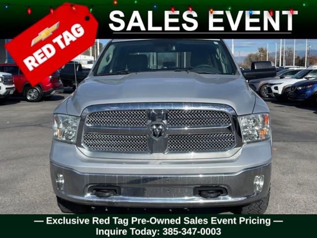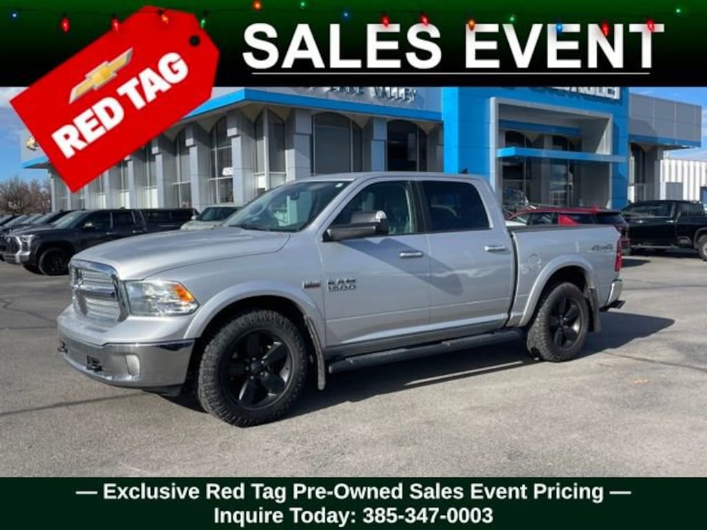 Turn every drive into something special with this Ram 1500 from Salt Lake Valley Chevrolet! Designed for comfort, performance, and style, this vehicle comes fully equipped with modern technology and convenience features youâll love. Plus, enjoy a $1,000 finance savings, already included in the sale price, when you finance through one of our trusted lending partners. If youâre shopping for used cars in Salt Lake City, or searching for the perfect SUV, truck, or sedan, this Ram 1500 delivers the dependability and value youâre looking for. Itâs the ideal match for your lifestyle - ready for everything from mountain adventures to city commutes. Visit Salt Lake Valley Chevrolet today and see why so many Utah drivers trust us for great deals on quality pre-owned vehicles. Explore our inventory online at www.slvchevy.com or call 801-969-8221 to schedule your test drive today! This impressive vehicle includes Quick Order Package 26U Harvest (DISC) (1-Yr SiriusXM Guardian Trial, 115V Auxiliary Power Outlet, 4x4 Decal, 5-Year SiriusXM Traffic Service, 5-Year SiriusXM Travel Link Service, 8.4 Touchscreen Display, Apple CarPlay, Audio Jack Input for Mobile Devices, Auto-Dimming Exterior Mirrors, Auto-Dimming Rear-View Mirror, Black Tubular Side Steps, Bright Grille, Bucket Seats, Center Hub, Charge Only Remote USB Port, Chrome Exterior Mirrors, Dual Rear Exhaust w/Bright Tips, Electroluminescent Instrument Cluster, Exterior Mirrors Courtesy Lamps, Exterior Mirrors w/Supplemental Signals, Folding Flat Load Floor Storage, Front & Rear Rubber Floor Mats, Full Length Upgraded Floor Console, Glove Box Lamp, Google Android Auto, GPS Antenna Input, GPS Navigation, HD Radio, Integrated Voice Command w/Bluetooth, Leather Wrapped Steering Wheel, LED Bed Lighting, Media Hub (2 USB, AUX), MOPAR Rear Bumper Step Extension, Overhead Console w/Garage Door Opener, Power 10-Way Driver Seat, Power Lumbar Adjust, Power Multi-Function F/Away Mirrors, Power-Folding Mirrors, Premium Cloth Bucket Seats, Radio: Uconnect 4C Nav w/8.4 Display, Rear 60/40 Split Folding Seat, Rear Dome w/On/Off Switch Lamp, Rear Mud Flaps, Remote Start System, Remote USB Port, Security Alarm, SiriusXM Satellite Radio, SiriusXM Traffic Plus, SiriusXM Travel Link, Steering Wheel Mounted Audio Controls, Sun Visors w/Illuminated Vanity Mirrors, Tow Hooks, Underhood Lamp, Universal Garage Door Opener, and USB Host Flip), 17 x 7 Aluminum Chrome Clad Wheels, 3.21 Rear Axle Ratio, 4-Wheel Disc Brakes, 40/20/40 Split Bench Seat, 6 Speakers, ABS brakes, Active Grille Shutters, Air Conditioning, Alloy wheels, AM/FM radio: SiriusXM, Black Exterior Mirrors, Brake assist, Bumpers: chrome, Class IV Receiver Hitch (DISC), Compass, Delay-off headlights, Driver door bin, Dual front impact airbags, Dual front side impact airbags, Electronic Shift, Electronic Stability Control, Exterior Mirrors w/Heating Element, Front anti-roll bar, Front Armrest w/3 Cupholders, Front Center Armrest w/Storage, Front reading lights, Front wheel independent suspension, Fully automatic headlights, Heated door mirrors, Illuminated entry, Low tire pressure warning, Occupant sensing airbag, Outside temperature display, Overhead airbag, Overhead console, Panic alarm, ParkView Rear Back-Up Camera, Passenger door bin, Passenger vanity mirror, Power door mirrors, Power steering, Power windows, Radio data system, Rear anti-roll bar, Rear seat center armrest, Rear step bumper, Remote keyless entry, Semi-Gloss Black Hub, Speed control, Spray In Bedliner (DISC), Storage Tray, Tachometer, Tilt steering wheel, Tip Start, Traction control, Trip computer, Variably intermittent wipers, Voltmeter, and Wheels: 20 x 8 Semi-Gloss Black Aluminum (DISC), offering everything you need for your next adventure.