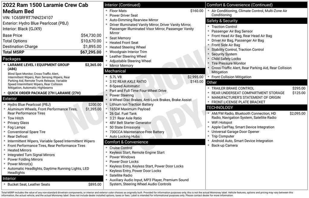 With a striking Hydro Blue Pearlcoat exterior and a spacious, well-appointed cabin, this 2022 Ram 1500 Laramie is a true standout. Whether you're looking for a capable work truck or a luxurious daily driver, this Ram has the versatility to handle it all.