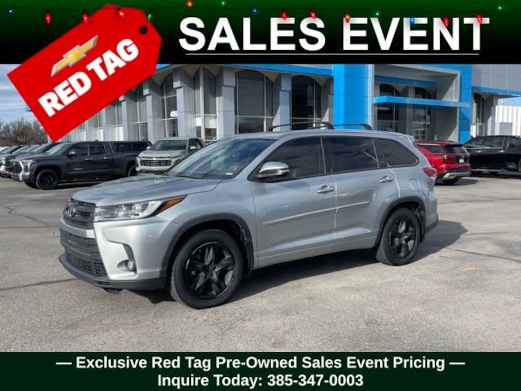Turn every drive into something special with this Toyota Highlander from Salt Lake Valley Chevrolet! Designed for comfort, performance, and style, this vehicle comes fully equipped with modern technology and convenience features youâll love. Plus, enjoy a $1,000 finance savings, already included in the sale price, when you finance through one of our trusted lending partners. If youâre shopping for used cars in Salt Lake City, or searching for the perfect SUV, truck, or sedan, this Toyota Highlander delivers the dependability and value youâre looking for. Itâs the ideal match for your lifestyle - ready for everything from mountain adventures to city commutes. Visit Salt Lake Valley Chevrolet today and see why so many Utah drivers trust us for great deals on quality pre-owned vehicles. Explore our inventory online at www.slvchevy.com or call 801-969-8221 to schedule your test drive today! This impressive vehicle includes ABS brakes, Active Cruise Control, Alloy wheels, Electronic Stability Control, Front dual zone A/C, Heated door mirrors, Heated front seats, Heated rear seats, Heated/Ventilated Front Bucket Seats, Illuminated entry, Low tire pressure warning, Navigation System, Perforated Leather Seat Trim, Power Liftgate, Power moonroof, Remote keyless entry, Traction control, 12 Speakers, 3.003 Axle Ratio, 3rd row seats: split-bench, 4-Wheel Disc Brakes, Air Conditioning, AM/FM radio: SiriusXM, Auto High-beam Headlights, Auto-dimming Rear-View mirror, Automatic temperature control, Brake assist, Bumpers: body-color, CD player, Delay-off headlights, Driver door bin, Driver vanity mirror, Dual front impact airbags, Dual front side impact airbags, Emergency communication system: Safety Connect, Exterior Parking Camera Rear, Four wheel independent suspension, Front anti-roll bar, Front Bucket Seats, Front Center Armrest, Front fog lights, Front reading lights, Fully automatic headlights, Garage door transmitter, Heated steering wheel, Knee airbag, Leather Shift Knob, Memory seat, Occupant sensing airbag, Outside temperature display, Overhead airbag, Overhead console, Panic alarm, Panoramic Moonroof, Panoramic View Monitor, Passenger door bin, Passenger vanity mirror, Power door mirrors, Power driver seat, Power passenger seat, Power steering, Power windows, Radio: Entune Premium JBL Audio w/Nav & App Suite, Rain sensing wipers, Rear air conditioning, Rear anti-roll bar, Rear reading lights, Rear window defroster, Rear window wiper, Reclining 3rd row seat, Roof rack: rails only, Safety Connect, Security system, Speed control, Speed-sensing steering, Split folding rear seat, Spoiler, Steering wheel mounted audio controls, Tachometer, Telescoping steering wheel, Tilt steering wheel, Trip computer, Turn signal indicator mirrors, Variably intermittent wipers, Ventilated front seats, and Wheels: 19 5-Spoke Dark-Chromtec Alloy, offering everything you need for your next adventure.