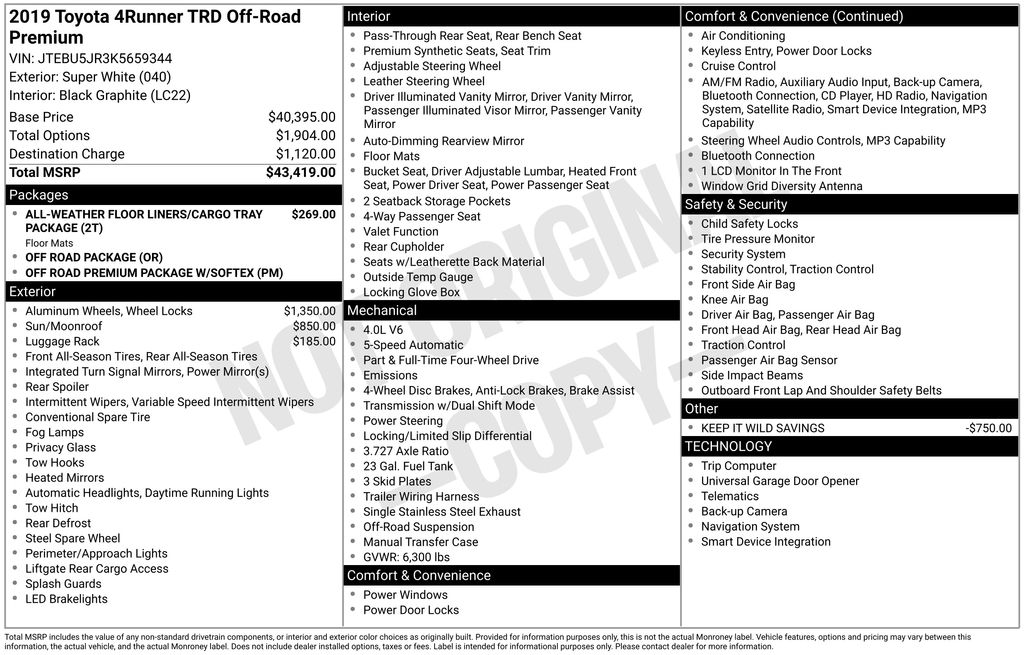 2019 Toyota 4Runner TRD Off Road Premium