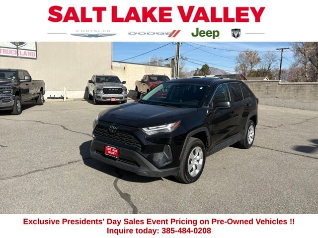 Get ready to hit the road in this Toyota RAV4, a standout choice for drivers looking for reliability, performance, and style! This impressive vehicle is packed with premium features designed to make every drive more enjoyable. Plus, youâll enjoy a $1,000 finance savings, already included in the sale price, when you finance through one of our trusted lending partners. Whether youâre searching for used cars in Salt Lake City, a dependable SUV, or a powerful truck, this Toyota RAV4 delivers everything you need and more. Visit Salt Lake Valley Chrysler Dodge Jeep Ram today to test drive or explore our entire selection of quality pre-owned vehicles. Donât wait - shop online at www.slvcdjr.com or call 801-484-8755 to learn more! This amazing vehicle comes loaded with options like 17" Steel Wheels, 4-Wheel Disc Brakes, 6 Speakers, ABS brakes, Air Conditioning, AM/FM radio: SiriusXM, Auto High-beam Headlights, Axle Ratio: 3.177, Brake assist, Bumpers: body-color, Driver door bin, Driver vanity mirror, Dual front impact airbags, Dual front side impact airbags, Electronic Stability Control, Emergency communication system: Safety Connect (10-year trial), Exterior Parking Camera Rear, Fabric Seat Trim, Four wheel independent suspension, Front anti-roll bar, Front Bucket Seats, Front Center Armrest, Front reading lights, Illuminated entry, Knee airbag, Low tire pressure warning, Occupant sensing airbag, Outside temperature display, Overhead airbag, Overhead console, Panic alarm, Passenger door bin, Passenger vanity mirror, Power door mirrors, Power steering, Power windows, Radio data system, Radio: AM/FM/XM Audio System, Rear anti-roll bar, Rear seat center armrest, Rear window defroster, Rear window wiper, Remote keyless entry, Speed control, Speed-sensing steering, Split folding rear seat, Spoiler, Steering wheel mounted audio controls, Tachometer, Telescoping steering wheel, Tilt steering wheel, Traction control, and Trip computer, making it the perfect choice for your next adventure.